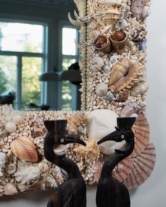 Flat scallops, oysters, blue mussels, various cowries, polished turbo, sea biscuits, various murex, seastars, fighting conches, delphinula, various land shells, abalones, lambis chiragra, fig cones, limpets, giant knobbed ceriths, polished giant trocas, polished trocas, various clams, rottings etc.